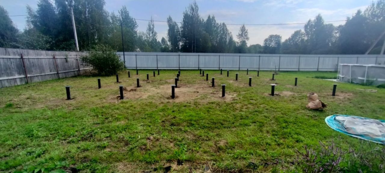 Компания "Сваекрутов" успешно завершила проект по строительству фундамента на винтовых сваях для будущего дома размером 10х8 метров. Проект выполнялся на участке заказчика в городе Талдом, Московской области. Главной задачей было создание надежного и прочного основания, на котором в дальнейшем будет возводиться дом. Для монтажа использовались винтовые сваи диаметром 108 мм и длиной 2,5 метра. На каждую сваю был установлен оголовок, обеспечивающий надежное крепление для последующей обвязки фундамента.