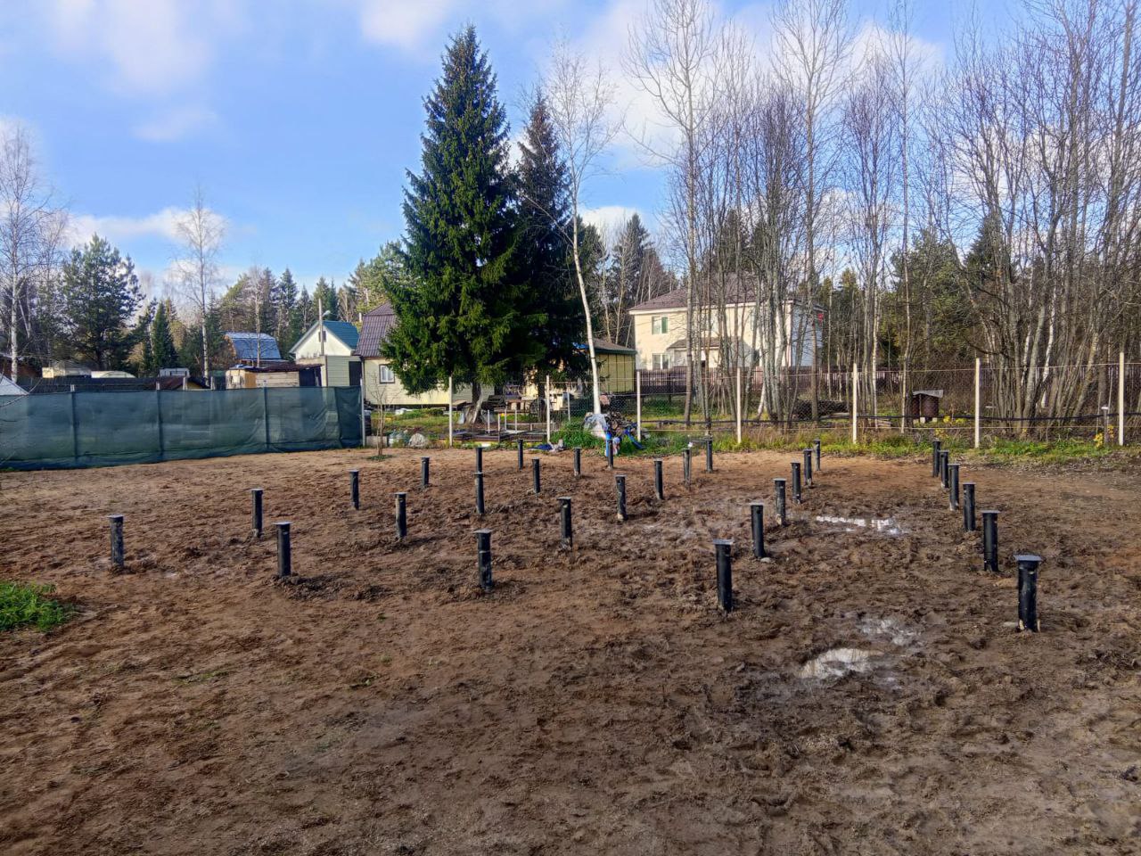 —Монтаж 30ти свай для дома 8х10 с расстоянием между сваями не более 2ух метров